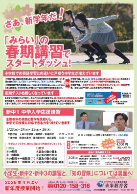 2026新中1 入学応援講習「はじめよう!最高のスタートダッシュ!!」