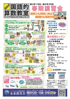2026新小1・新小2・新小3「国語的算数教室」春期講習会のご案内